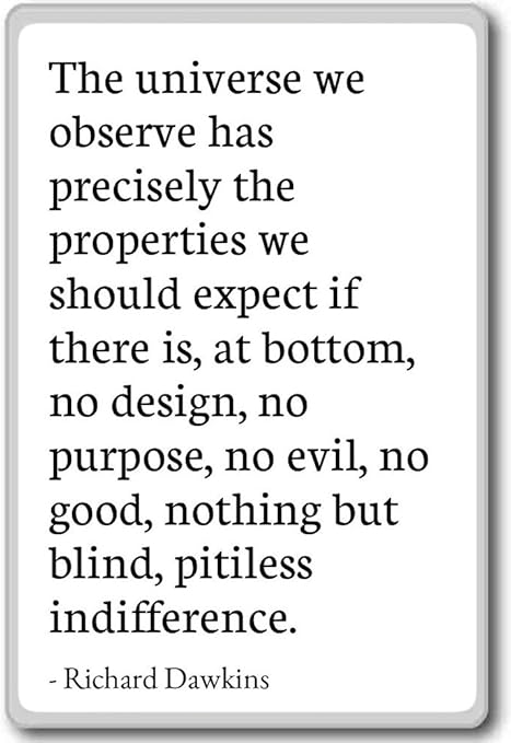 Lewis 1995 quotes Albert Einstein 1929 quotes Thomas Jefferson 1754. Richard Dawkins The Blind Watchmaker. Richard Dawkins says at the end of chapter 4 of his book River Out of Eden The universe we observe has precisely the properties we should expect if there is at bottom no design no purpose no evil and no good nothing but blind pitiless indifference.